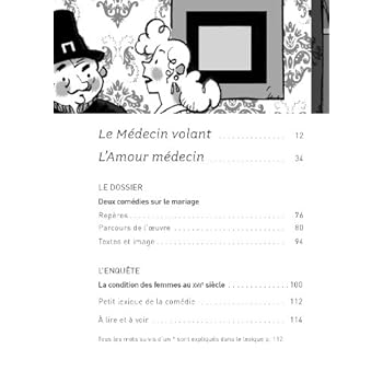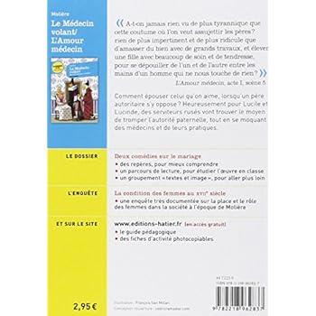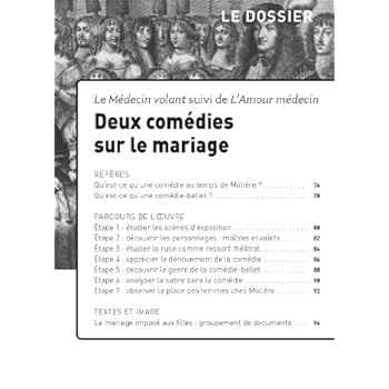 Oeuvres en texte intégral, en lien avec le thème « Résister au plus fort » du nouveau programme de français en 6e.RésuméComment épouser celui qu'on aime quand son père s'y oppose ? Lucinde et Lucile ont la même idée : feindre la maladie et profiter de la crédulité de leur père.Deux courtes comédies-ballets dans lesquelles Molière nous fait rire des pères trop autoritaires et de la médecine de son époque.L'édition Classiques & Cie collègePar Laurence Mokrani.Soigneusement annoté, le texte des deux pièces est associé à un dossier illustré, qui comprend :- un guide de lecture intitulé « Deux comédies sur le mariage », avec des repères, un parcours de l'oeuvre et un groupement de documents sur le thème du mariage imposé aux filles,- une enquête documentaire sur la condition des femmes au XVIIe siècle.